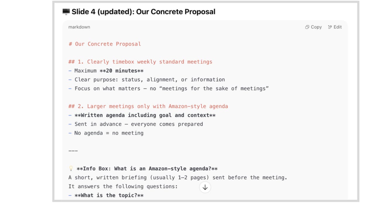 “It turned my messy notes into a boardroom-ready slide deck.”