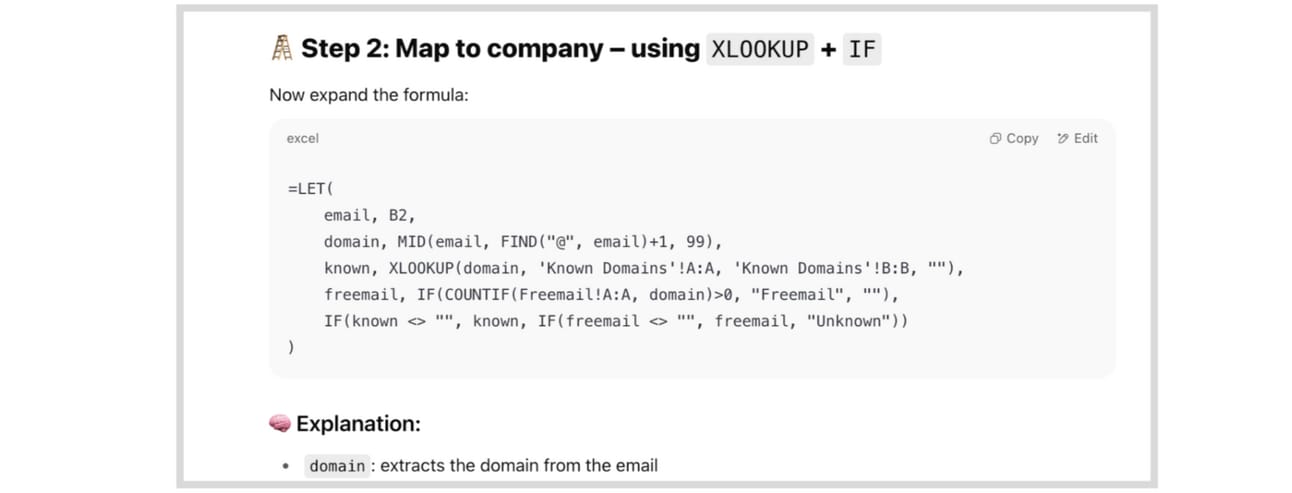 Solve spreadsheet problems instantly. It’s like having the best Excel guru from your team on call 24/7.