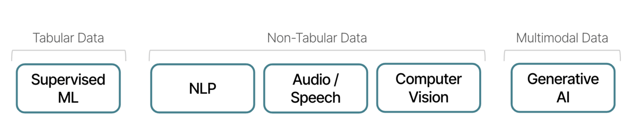 The input data type for supervised machine learning is typically tabular data, and most business use cases still rely on tabular data - that's why this archetype is so valuable. You train a model on historical data, and you can use that model to make predictions on new data points - sweet!