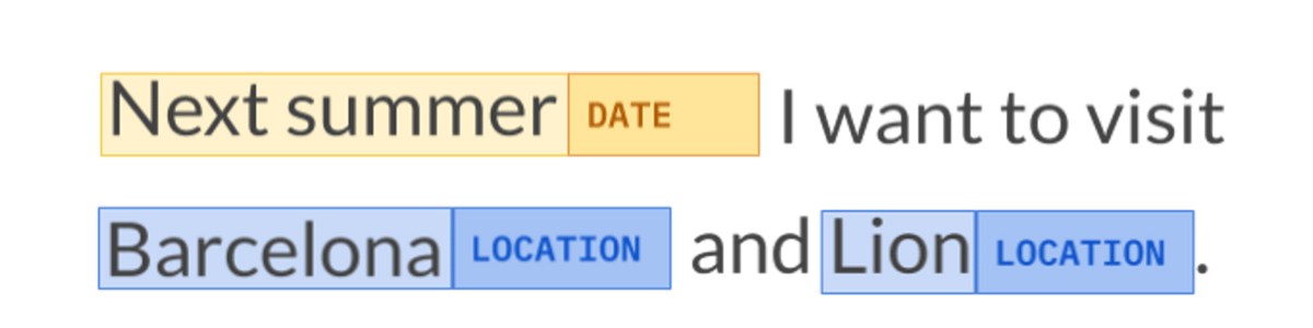 For example, modern NLP services are able to capture a good amount of context. For example, given the sentence "Next summer I want to visit Barcelona and Lion", a good entity extraction service would be able to recognize that "next summer" refers to a time/date dimension, and the words "Barcelona" and "Lion" both refer to locations - and not to an animal, despite the typo here (the city's name is Lyon).