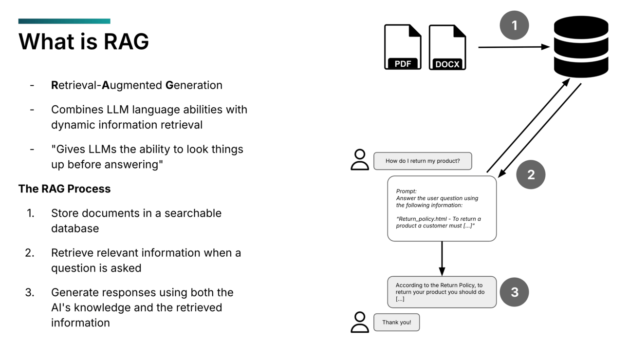 Retrieval-augmented generation (RAG) links off-the-shelf models to your own evolving knowledge base, updating them in real time and tailoring responses to your domain. Suddenly, models that once knew "a little about everything" can cite internal policies, answer support tickets, or walk someone through a fine-tuning tutorial—grounded in your organization’s latest data and practices.