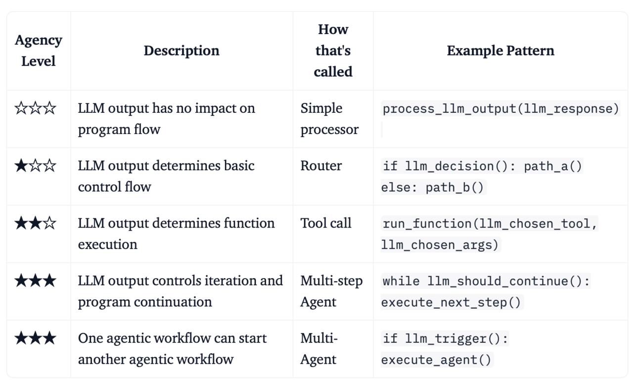In terms of LLMs, I like this framework from Hugging Face that shows different levels of LLM autonomy: