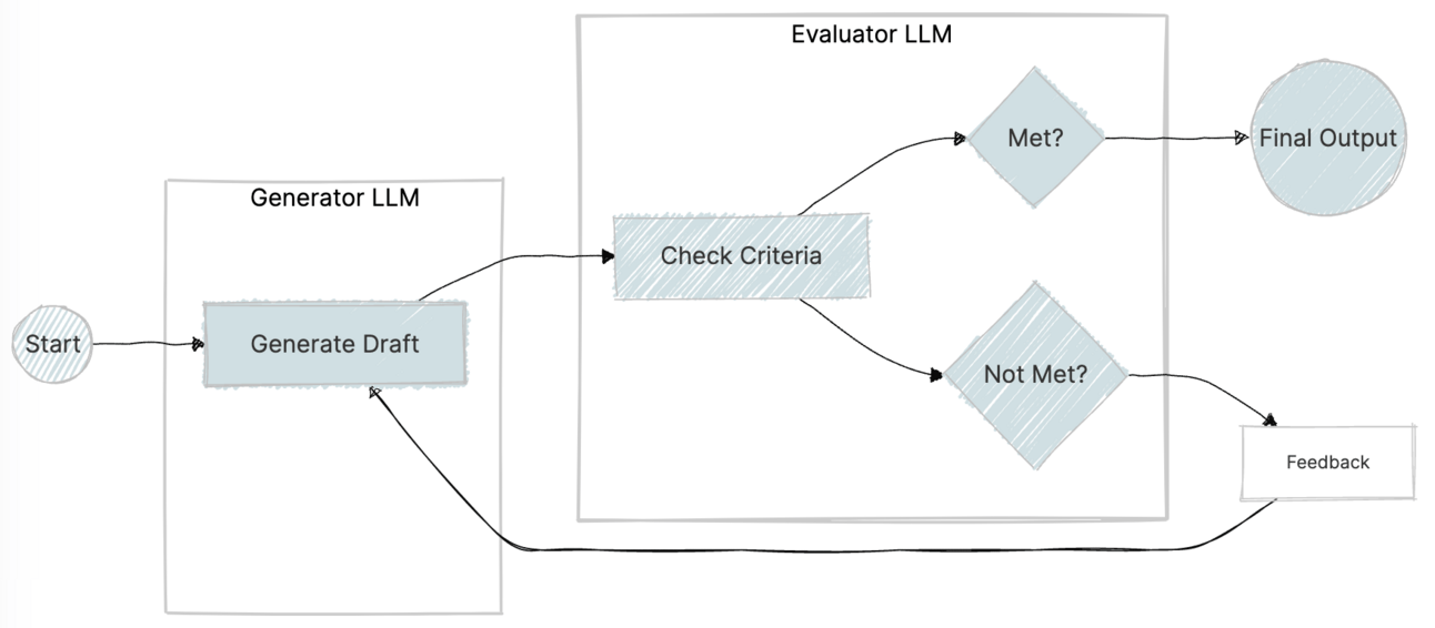 Evaluator LLM: Checks against criteria (e.g., structure adherence)