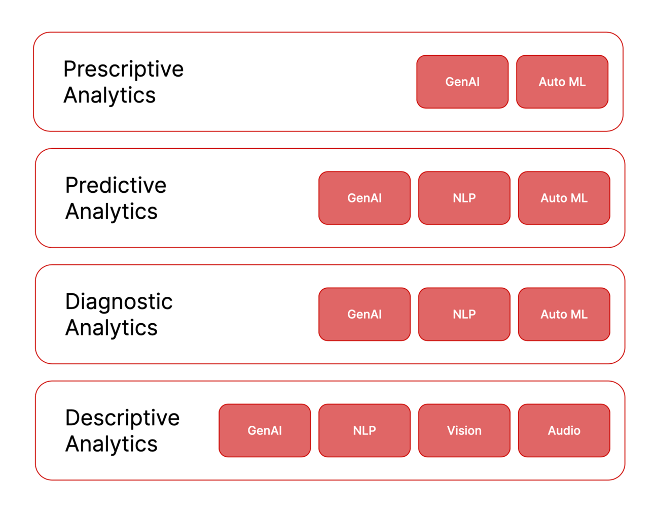AI can enhance each type of analytics, but its role varies depending on the specific requirements of each stage.