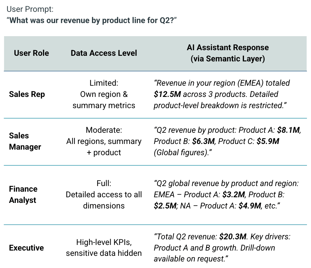 AI Assistant Responses based on user role and data access level.