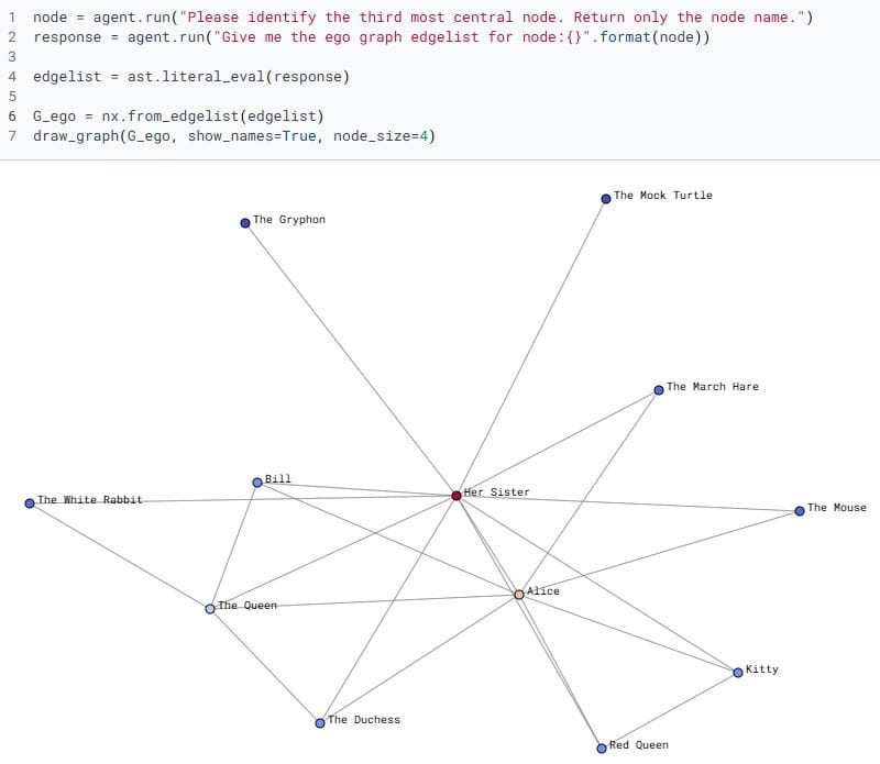 In fact, David Knickerbocker, author of Network Science with Python has shared excellent examples of how AI can help people interact with such graphs:
