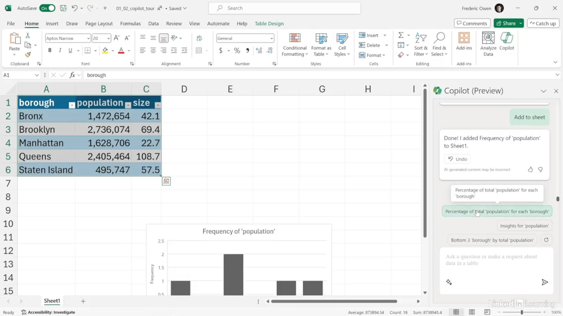Copilot generates formulas, charts, and insights through natural language prompts
