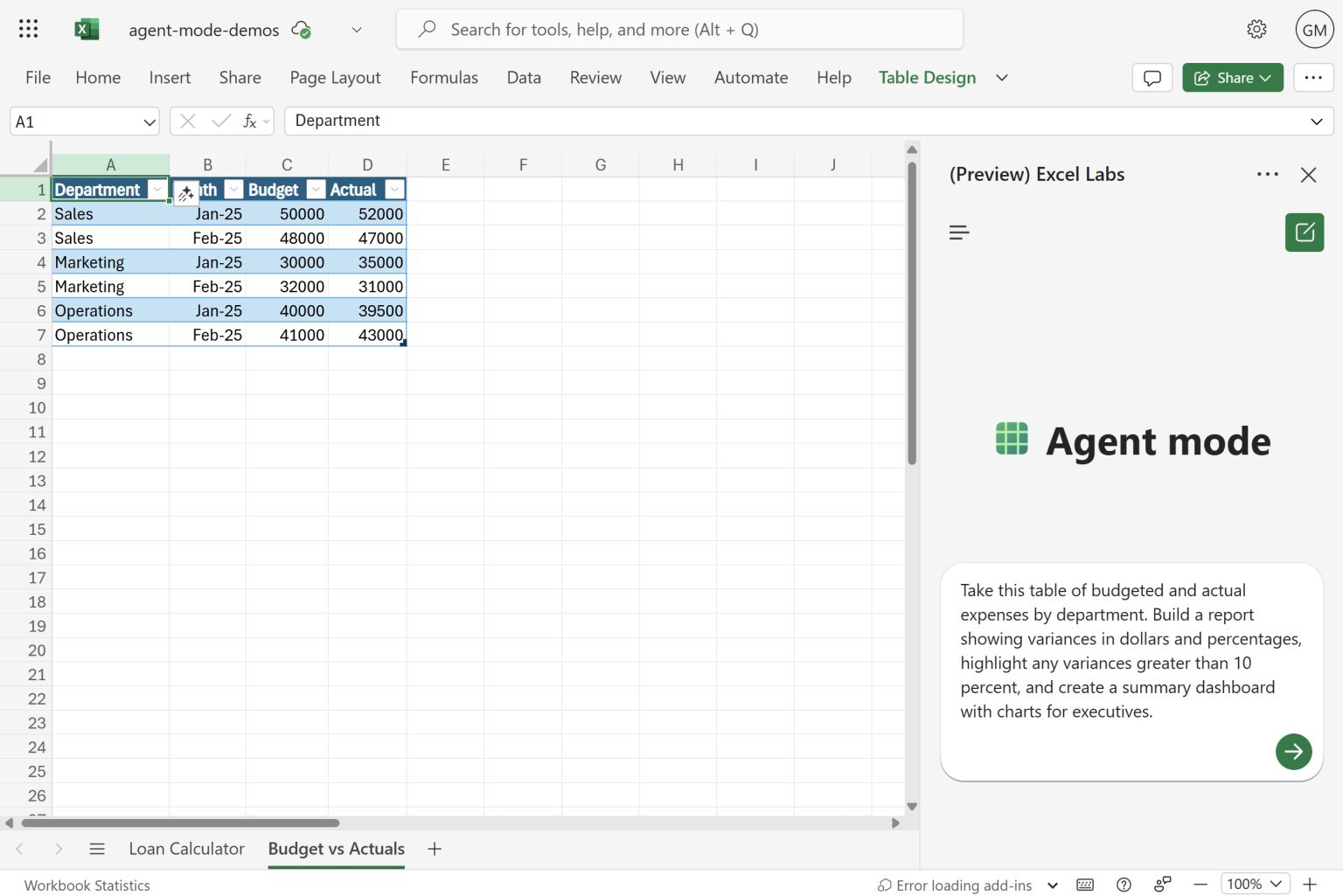 Agent Mode in Excel (preview)