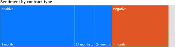 The treemap visual contrasts the sentiment labels to any customer dimension - in this case, contract type.