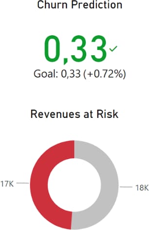 The donut chart called "Revenue at risk" sums up all the revenues of the current month from customers marked with a churn flag = 1.