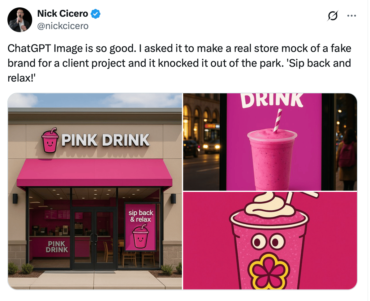 Here's another cool example where someone used the new ChatGPT image generation to not only visualize an idea, but to create an entire brand (along with a really nice slogan - "Sip back and relax!")