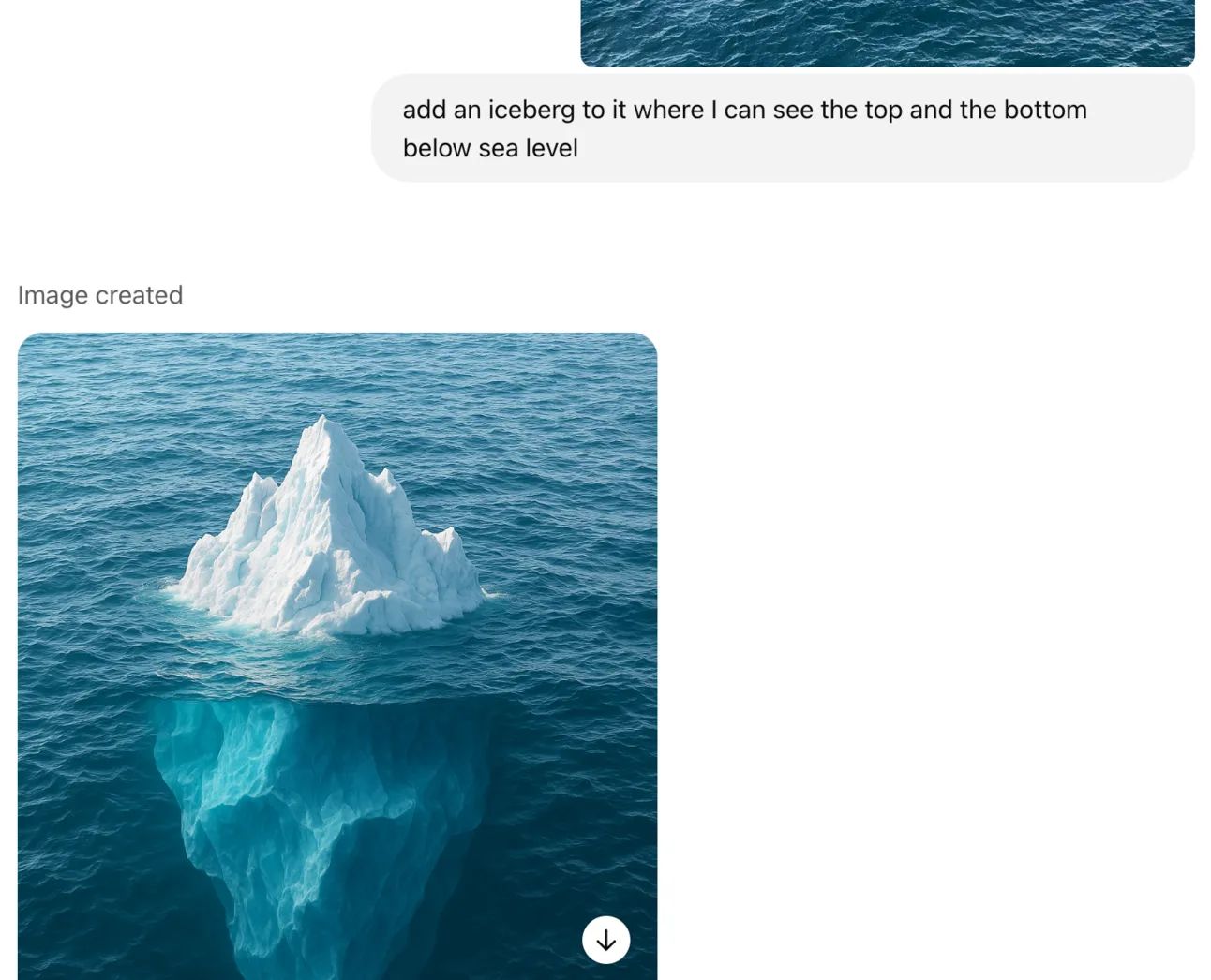 So I asked ChatGPT to put an iceberg in the ocean that's visible from both above and below: