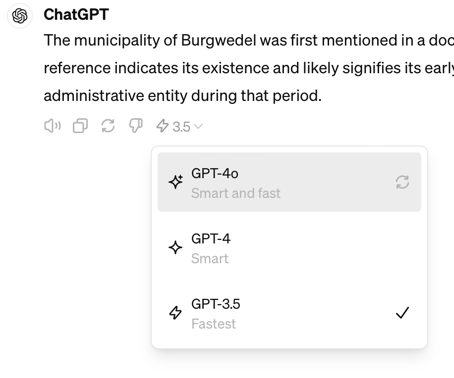 Tip: Compare the response quality of GPT-3.5 with GPT-4o directly by switching models inside the chat conversations. This works in the free tier, too.