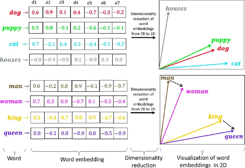In very simple terms, a vector embedding is a long list of numerical values that represents the meaning (semantics) of a text item. When the numbers of two items are very similar, it means they have a similar meaning: