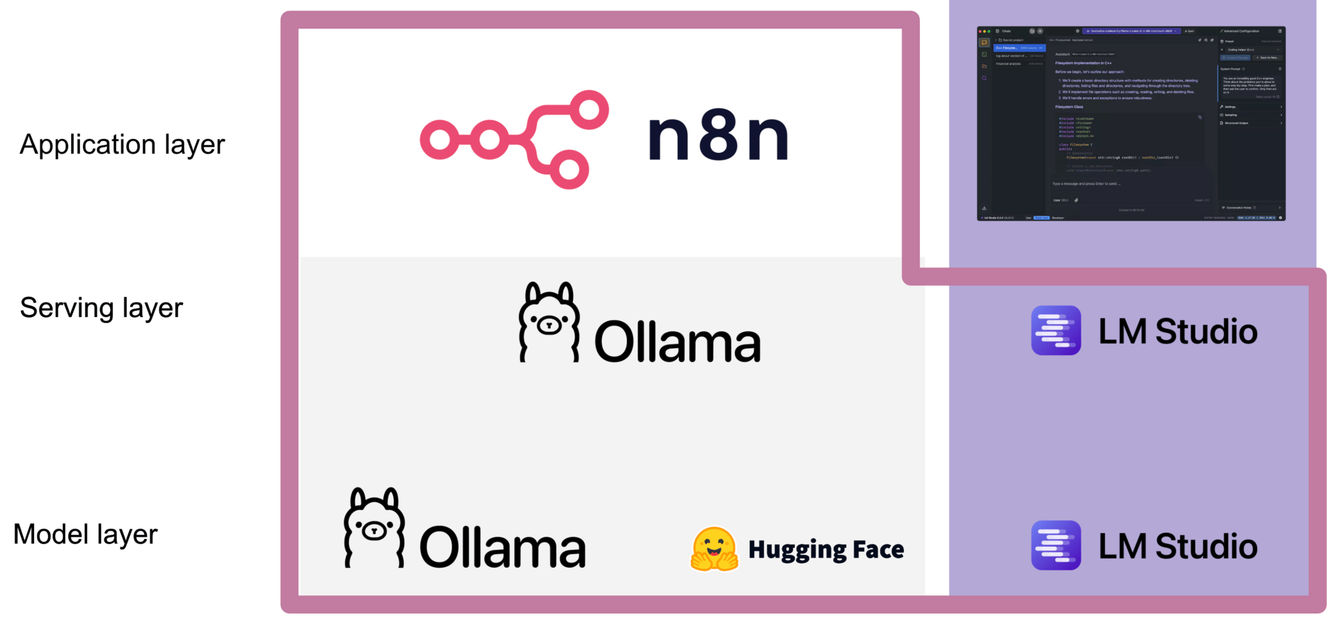LM Studio → one-click chat interface + serving layer