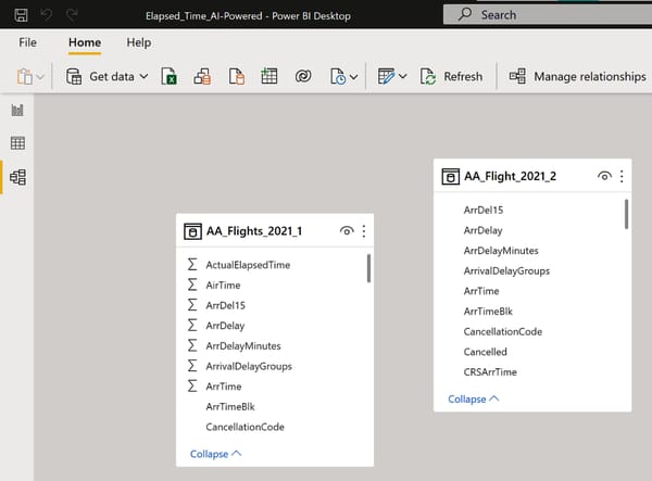 Open Elapsed_Time.pbix (resources below) in Power BI Desktop and take a look at the data model. You will see two data sources: