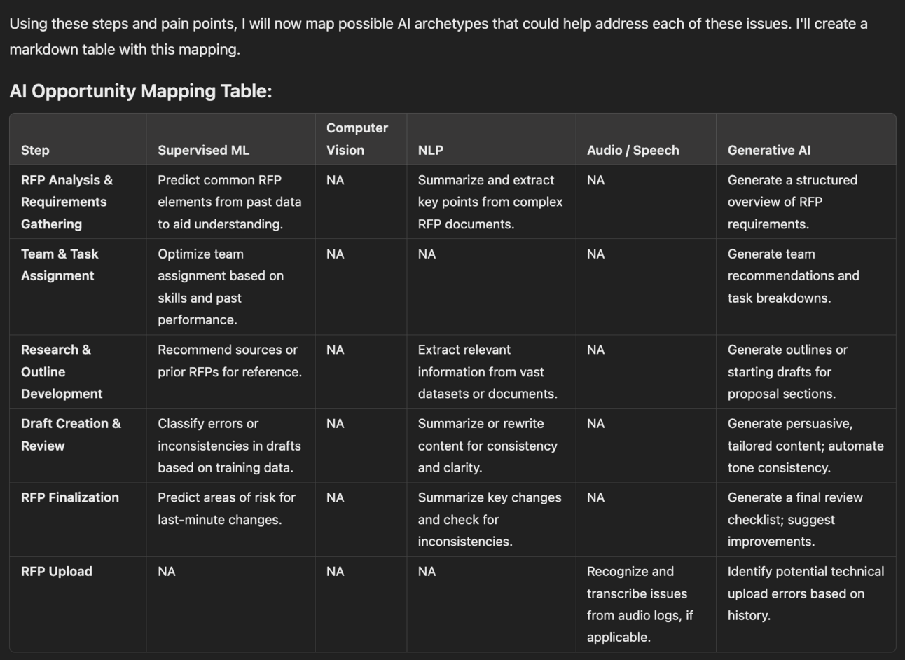 For example, let’s revisit our RFP AI Capability Mapping: