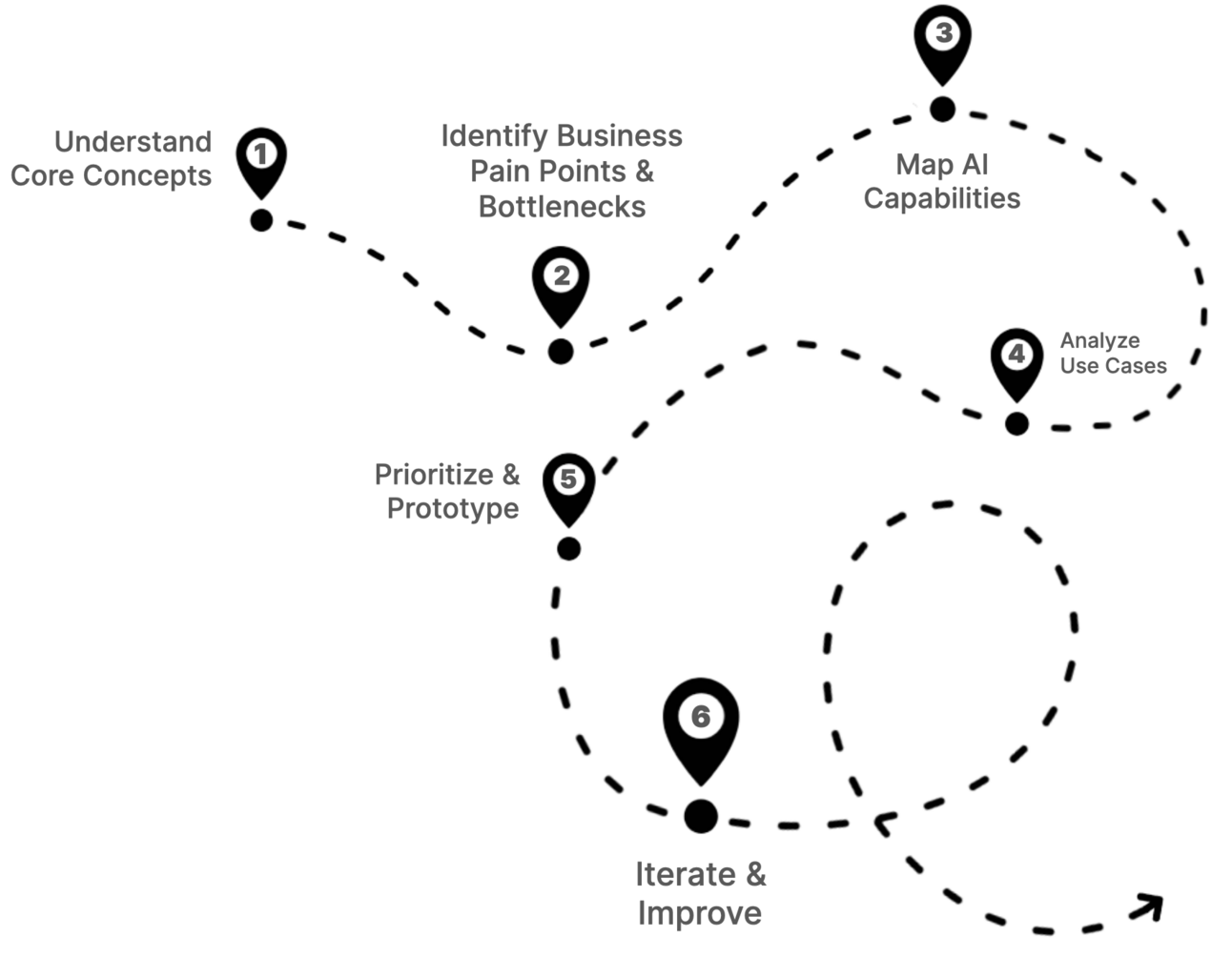 Review and adjust your roadmap often based on learnings and changes in the AI landscape. Treat it like a real roadmap for a road trip. Keep the goal fixed, but stay flexible in your approach to reach it.