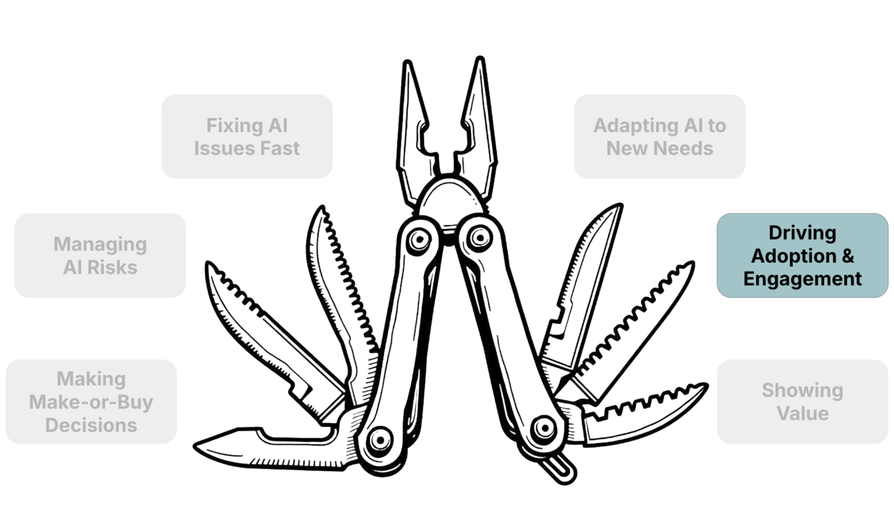 Why it’s important: In legacy companies, where resistance to change can be high, widespread adoption is critical for ensuring the AI delivers its intended value. Without it, even the best AI system can fall short.
