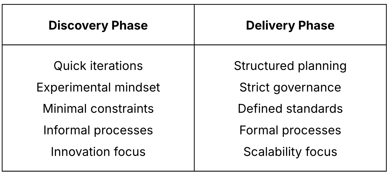 When we talk about "scaling AI", what we're really discussing is the transition between two distinct phases of the AI product lifecycle: discovery and delivery.