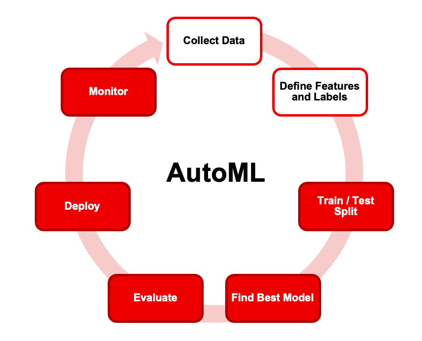AutoML abstracts and automates most of the steps in the supervised machine learning process:
