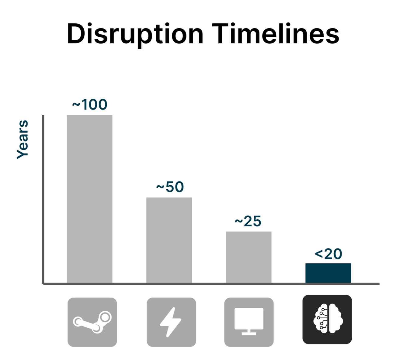 In contrast, AI transformation is reshaping industries in about a decade.