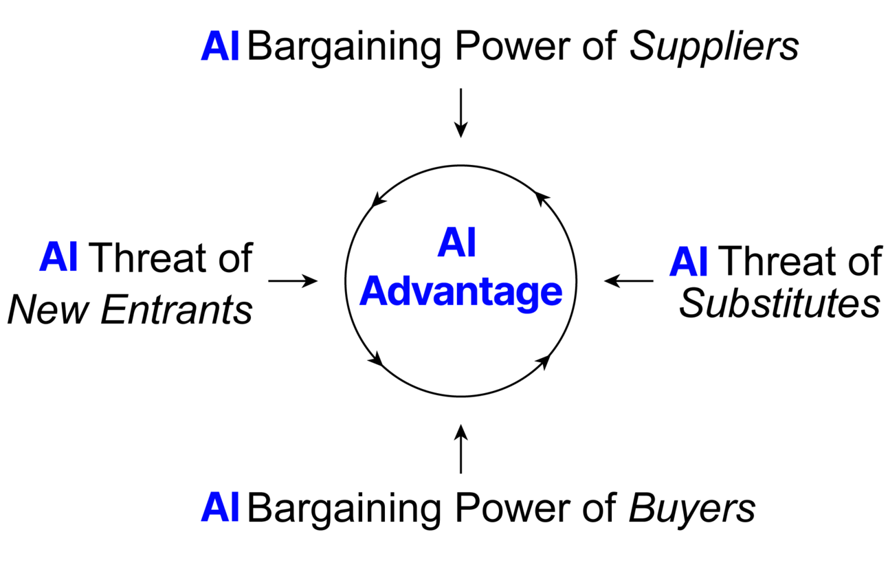 To understand the impact of AI on competitive dynamics, let's revisit Porter's classic Five Forces framework, which is an excellent lens through which to examine these changes: