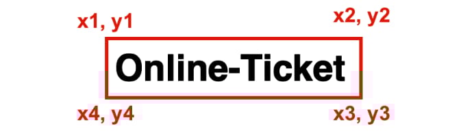The bounding boxes are represented by x and y coordinates starting at the top left of the document with coordinates x = 0 and y = 0. Each bounding box is mapped as [x1, y1, x2, y2, x3, y3, x4, y4] like so: