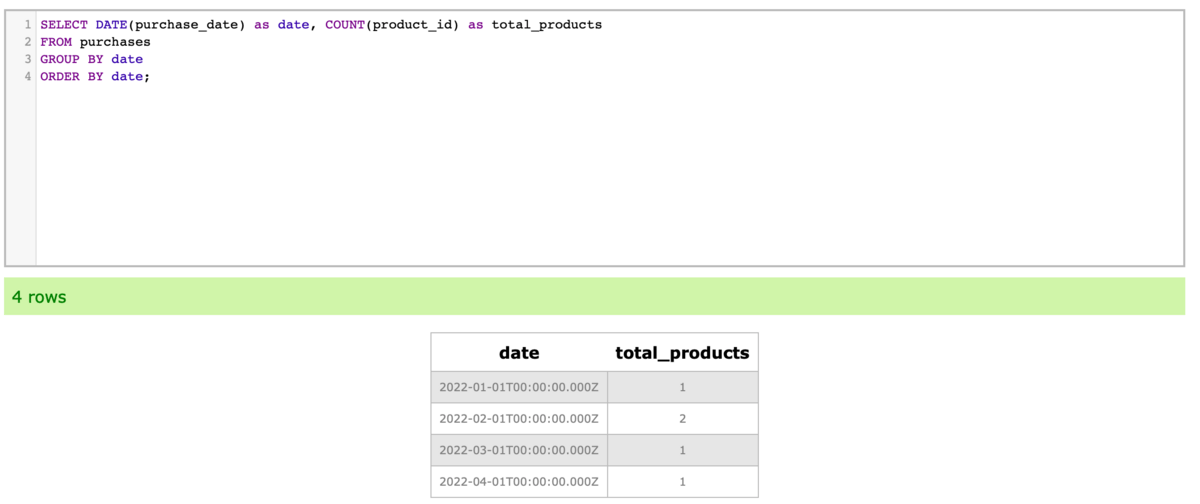 Let's try to fetch the total number of products sold by day.