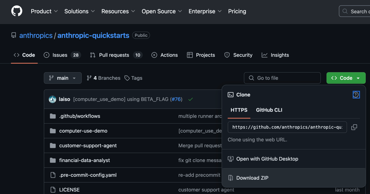 1. Go to the official Anthropic Quickstarts repo on Github