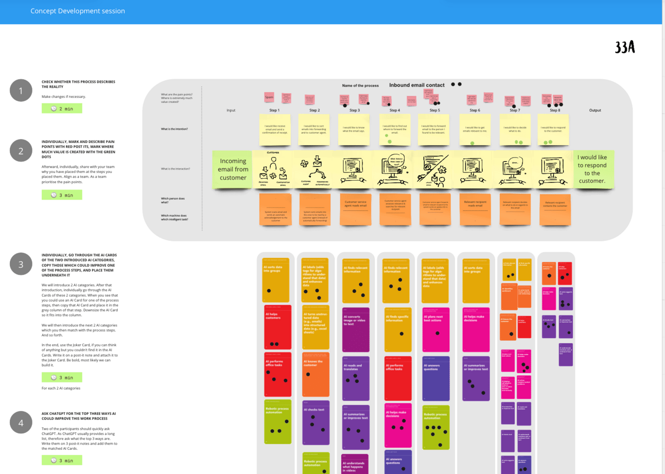 In both cases, the goal is to identify key focus areas for an AI-enabled solution and prepare you for a deep dive in the concept development session.