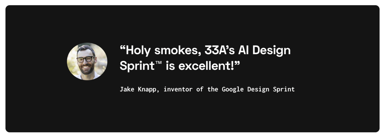 Created by 33A in Denmark, the AI Design Sprint comes highly recommended by none other than Jake Knapp, inventor of the Google Design Sprint.