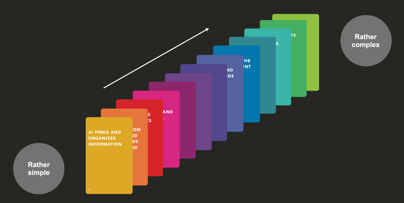 A powerful core component of every AI Design Sprint™ is the AI Cards. They are a brilliant innovation designed to make AI concepts easily accessible to non-technical business people.