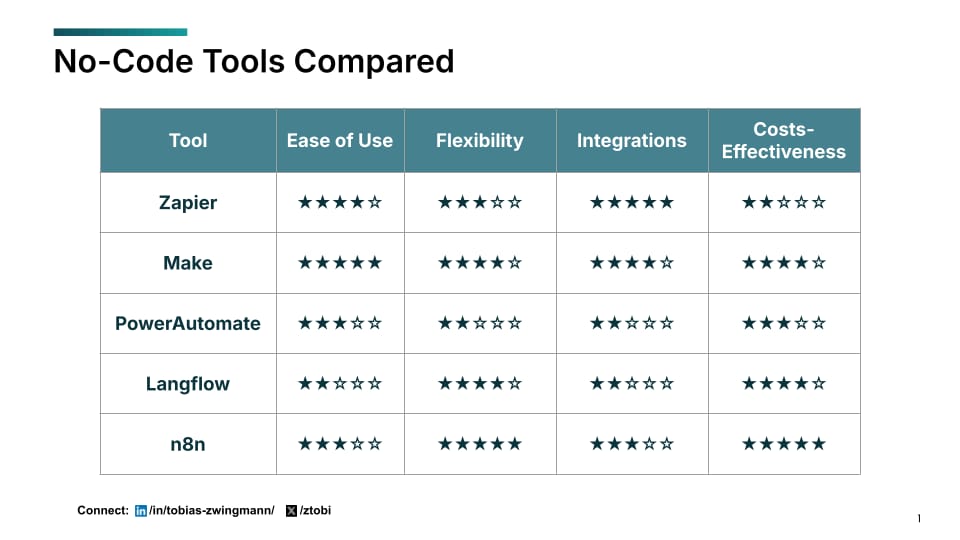 Overall, here's my personal assessment of where n8n sits compared to the other tools: